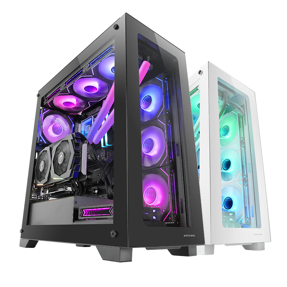 Mars Gaming MC-XP. Forma: Tower, Tipo: PC, Cor do produto: Preto. Diâmetros de ventiladores frontais compatíveis: 120 mm, Diâmetros de ventiladores traseiros compatíveis: 120 mm, Diâmetros de ventiladores de topo compatíveis: 120,240 mm. Tamanhos de drives de discos rígidos compatíveis: 2.5,3.5″. Largura: 485 mm, Profundidade: 217 mm, Altura: 450 mm